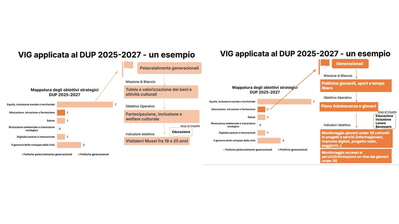 Questo percorso ci ha consentito, dopo un momento di formazione e allineamento con il gruppo dirigente, di applicare, seppur sperimentalmente, la metodologia della VIG al DUP 2025-2027 approvato dal Consiglio Comunale a dicembre 2024 [14].