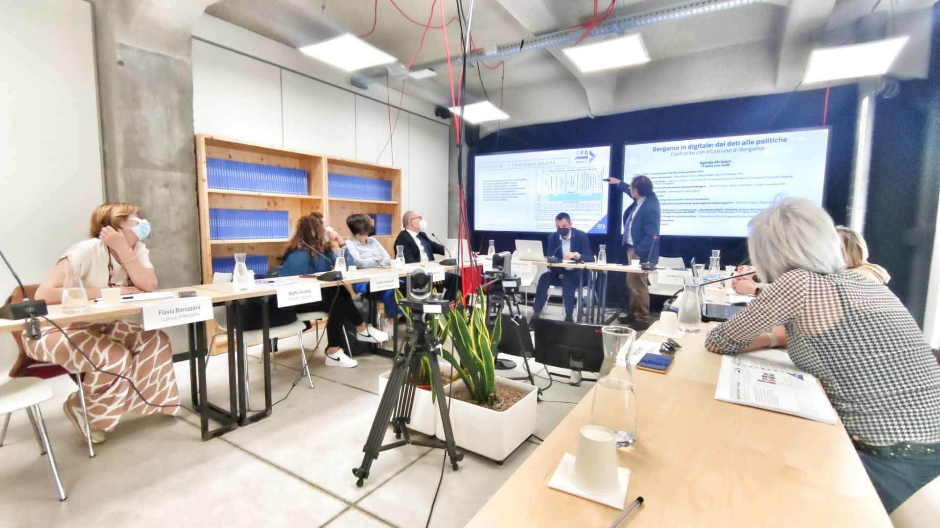 L’incontro si è tenuto lo scorso 12 aprile e ha visto la presenza a Roma, presso il Talent Garden di Ostiense (sede di FPA), di Giacomo Angeloni, Assessore all’Innovazione, Alessandro Francioni, Dirigente al settore Innovazione e la squadra operativa di innovatori di Bergamo che ha reso possibile il risultato per la città. L’incontro è stato l’occasione per prendere consapevolezza del risultato ottenuto, ma soprattutto per analizzare nel dettaglio i punti deboli e capire come migliorarli nel prossimo futuro.