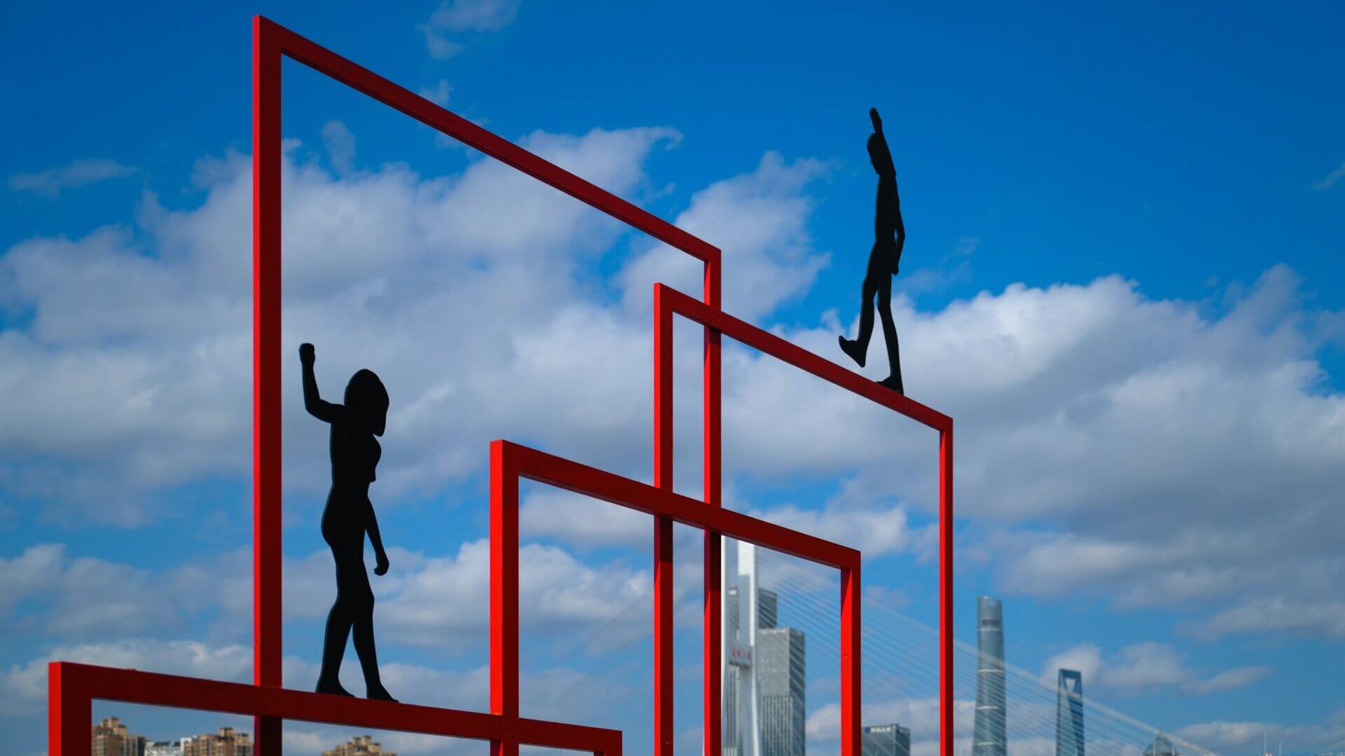 Foto di Declan Sun su Unsplash - https://unsplash.com/it/foto/un-paio-di-persone-in-piedi-in-cima-a-una-struttura-rossa-XRxT8ZPSM7I