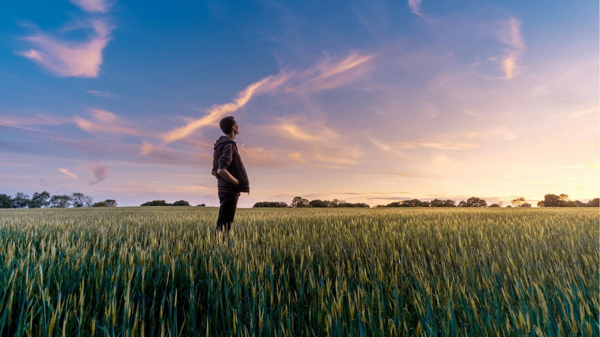 Foto di Benjamin Davies su Unsplash - https://unsplash.com/it/foto/uomo-sul-campo-derba-che-guarda-il-cielo-JrZ1yE1PjQ0