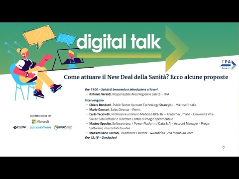 Per creare le condizioni per la necessaria collaborazione tra Sanità e il mondo delle imprese hi-tech, FPA agevola l’incontro attraverso numerose iniziative. Tra queste, “Come attuare il New Deal della Sanità? Ecco alcune proposte”, il digital talk dell’11 maggio scorso, organizzato in collaborazione con Microsoft e i partner Porini, 4wardPRO, Proge-Software, ha inteso dare esempi concreti agli enti sanitari impegnati nella ricerca di soluzioni digitali efficaci. Attraverso alcune case study e il contributo dei vendor, si è parlato di piattaforme e strumenti capaci di connettere tutti gli attori e di supportarli nelle decisioni di diagnosi e cura.